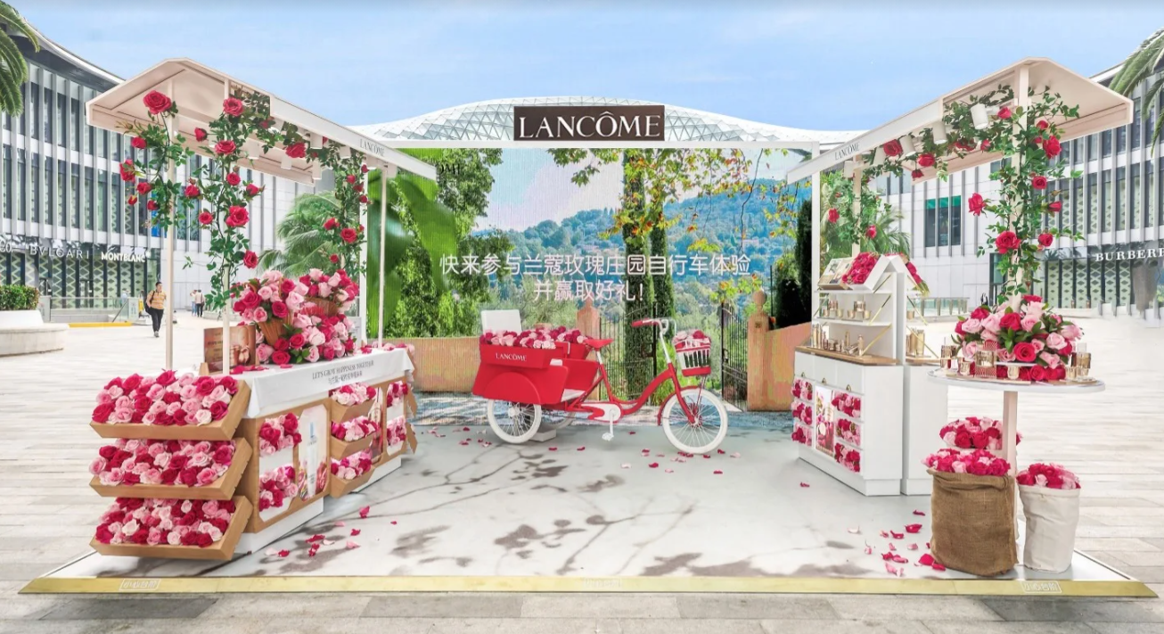 在三亞國(guó)際免稅城“一起收獲幸福未來”快閃活動(dòng)中,游客可通過掃描“可持續(xù)餐桌”上的二維碼創(chuàng)建自己的虛擬玫瑰花束。蘭蔻亞太旅游零售部承諾,消費(fèi)者每完成一次互動(dòng)虛擬花束,公司都會(huì)在法國(guó)格拉斯玫瑰莊園中種植一株專屬的有機(jī)玫瑰。消費(fèi)者還可以參與蘭蔻玫瑰莊園自行車虛擬體驗(yàn)活動(dòng),欣賞玫瑰莊園的美景,并了解可再生能源生產(chǎn)的相關(guān)知識(shí)。