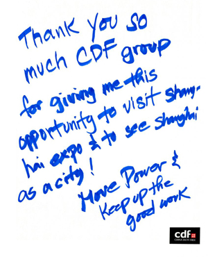 “我家是在菲律賓,每年都會(huì)來一次廈門,每次都在免稅店買些東西。這次從廈門機(jī)場(chǎng)準(zhǔn)備返程的時(shí)候在免稅店買兩瓶酒還有施華洛世奇飾品準(zhǔn)備送我太太,結(jié)賬的時(shí)候店員介紹我填寫抽獎(jiǎng)卡片,說有機(jī)會(huì)可以中獎(jiǎng)免費(fèi)游世博會(huì),沒想到真的中獎(jiǎng)了。當(dāng)接到中獎(jiǎng)通知電話的時(shí)候感覺很是不可思議,很懷疑‘是真的嗎?’但是當(dāng)中獎(jiǎng)資料文件和世博門票郵寄給我的時(shí)候我才相信這是真的呵呵。”
