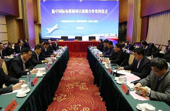 簽約儀式前,三方共同聽取了北京臨空經(jīng)濟核心區(qū)關(guān)于臨空國際免稅城項目的初步規(guī)劃情況,三家單位主要領(lǐng)導(dǎo)分別進行了熱情洋溢的講話。