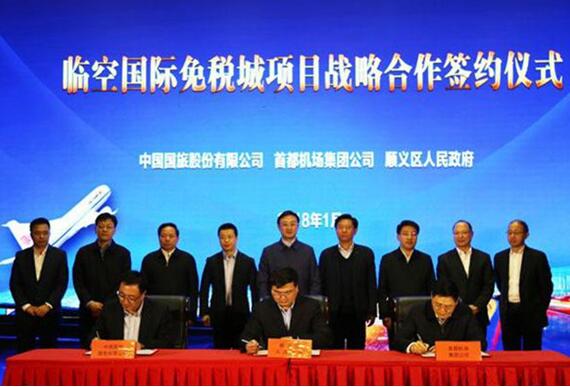 1月12日,中國國旅股份有限公司、首都機場集團、順義區(qū)三方在京舉行臨空國際免稅城項目戰(zhàn)略合作框架協(xié)議簽約儀式。中國旅游集團副總經(jīng)理、國旅股份公司董事長李剛,首都機場集團公司總經(jīng)理、黨委副書記劉雪松,北京市順義區(qū)委書記王剛出席簽約儀式,國旅股份公司總經(jīng)理彭輝、首都機場集團黨委書記、副總經(jīng)理宋勝利與順義區(qū)區(qū)委常委、副區(qū)長初軍威代表三方在協(xié)議上簽字。