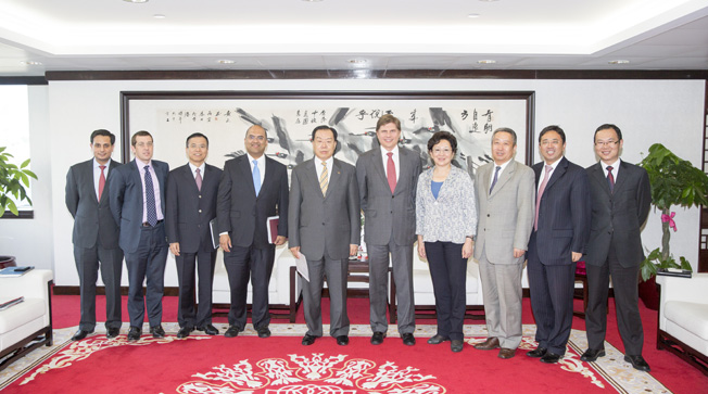 9月1日,集團張學武董事長、姜巖總經(jīng)理在香港會晤了到訪的摩根大通亞太區(qū)主席Nicolas Aguzin先生一行,雙方就開展進一步合作等事宜進行深入探討。張逢春總會計師、許慕韓副總經(jīng)理以及集團財務部相關人員陪同會見。