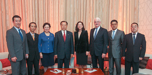 獵鷹國際投資迪拜董事總經(jīng)理、卓美亞酒店集團(tuán)總裁,集團(tuán)薄寶華總經(jīng)理助理、集團(tuán)戰(zhàn)發(fā)部、旅行社板塊及酒店板塊等相關(guān)人員參加了會見。(集團(tuán)辦公廳)