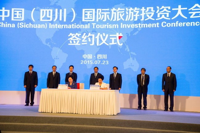7月23日,集團姜巖總經(jīng)理、鄭江副總會計師、戰(zhàn)發(fā)部陳賢君總經(jīng)理、資產(chǎn)板塊田群總經(jīng)理、景區(qū)板塊曲濤常務(wù)副總經(jīng)理等一行參加了在成都舉辦的“中國(四川)國際旅遊投資大會”。會上,姜巖總經(jīng)理代表集團與四川省政府簽訂了《促進中國港中旅集團與四川省政府關(guān)於旅遊業(yè)發(fā)展戰(zhàn)略合作協(xié)定》。四川省委書記王東明、省長魏宏、國家旅遊局局長李金早、中國房地產(chǎn)業(yè)協(xié)會會長劉志鋒等領(lǐng)導(dǎo)出席會議。中國國旅集團董事長兼總經(jīng)理王為民、華僑城集團公司副總裁劉平春 、大連萬達集團董事長王健林、新希望集團董事長劉永好等120多家境內(nèi)外知名旅遊企業(yè)負責(zé)人參加了會議。