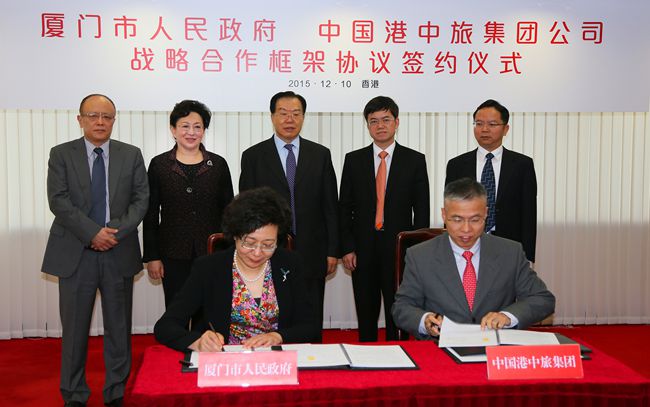 12月10日,集團(tuán)張學(xué)武董事長(zhǎng)、姜巖總經(jīng)理在集團(tuán)會(huì)見(jiàn)了廈門(mén)市人民政府裴金佳市長(zhǎng)一行,雙方就深化合作進(jìn)行會(huì)談,並舉行《廈門(mén)市人民政府 中國(guó)港中旅集團(tuán)戰(zhàn)略合作框架協(xié)定》簽字儀式。