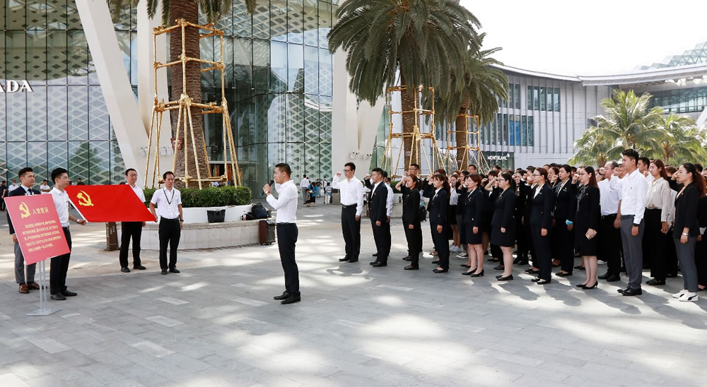 三亞店黨委組織全體黨員進(jìn)行莊嚴(yán)的宣誓活動(dòng)。一句句鏗鏘有力、擲地有聲的錚錚誓言響徹免稅店上空,是為中國共產(chǎn)黨成立100周年獻(xiàn)禮,更是對(duì)黨、對(duì)人民的鄭重承諾。