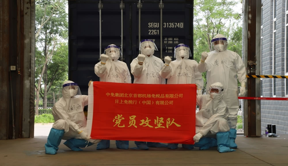 一個黨支部就是一座堡壘,一名黨員就是一面旗幟。哪里有困難,哪里就必須由黨員干部帶頭扛起來。中免日上的物流倉儲基地作為防疫第一線,接收、存放著來自海外的國際貨品。其中,卸貨崗是最令人望而卻步的艱苦崗位。盛夏的北京,酷暑難耐,每次貨物到港后,員工要身著密不透風(fēng)的防護服,配合做好消殺,并在高溫環(huán)境中完成對海運集裝箱內(nèi)貨物進行卸貨、搬運、二次消毒。勞動強度高,感染風(fēng)險大,非常人可以忍受。針對此情況,首都機場聯(lián)合黨支部迅速成立黨員先鋒隊專門保障此崗位,讓黨員身份亮出來、干部責(zé)任顯出來,做到了關(guān)鍵崗位有黨員、困難面前有黨員,讓黨員干部充分發(fā)揮先鋒模范作用,切實發(fā)揚黨員干部責(zé)任擔(dān)當(dāng)精神。