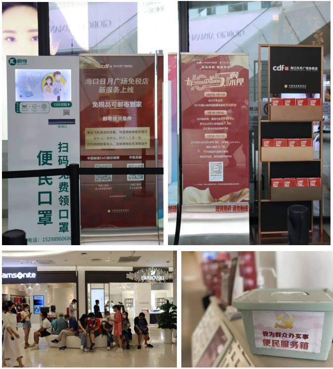 各門店結(jié)合實(shí)際情況,考慮顧客購物細(xì)節(jié),提供了多項(xiàng)貼心服務(wù):放置離島免稅政策說明牌,防疫溫馨提示牌、店面各品牌中英文導(dǎo)購圖,方便顧客了解相關(guān)信息;人流密集區(qū)域加裝空調(diào),調(diào)節(jié)舒適溫度;放置6套沙發(fā)、14條長椅,配備客用飲水機(jī)和紙杯,方便顧客休息;提供女性用品、行李寄存、貴重物品遺失招領(lǐng)、嬰兒車服務(wù)和傘套機(jī)服務(wù),加強(qiáng)細(xì)節(jié)服務(wù);增加25部移動POS機(jī),節(jié)省顧客排隊(duì)等候時(shí)間;門店出入口安裝人體熱成像測溫儀,提高防疫體溫檢測效率;配備口罩、手消液和醫(yī)用濕紙巾等防疫物資,方便顧客做好個人防護(hù);設(shè)置客服專線,確保在1小時(shí)內(nèi)給予顧客答復(fù)。