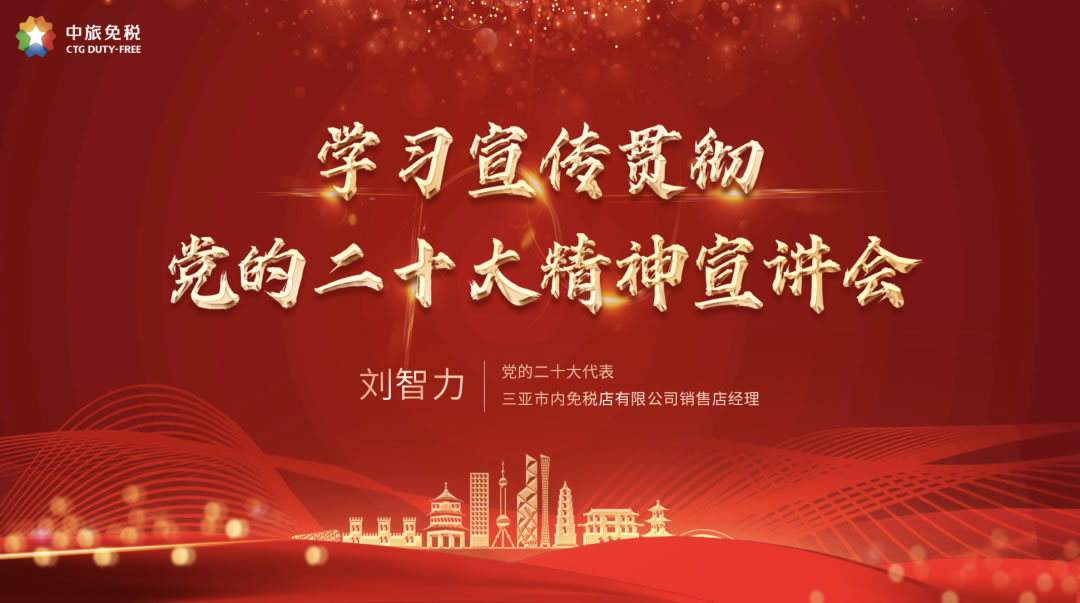 為持續(xù)深入學(xué)習(xí)宣傳貫徹黨的二十大精神,12月7日,中旅免稅黨委組織召開第二場學(xué)習(xí)宣傳貫徹黨的二十大精神宣講會,邀請黨的二十大代表、三亞市內(nèi)免稅店劉智力同志分享參加黨的二十大、學(xué)習(xí)黨的二十大精神的心得體會。宣講會采取線上直播的方式進行,公司黨委班子成員、所屬企業(yè)黨委班子成員、公司各級黨支部書記、公司總部中層以上管理人員和公司全體黨員、團員在線參加學(xué)習(xí),同時此次宣講會還向10000多名中旅免稅員工開放。