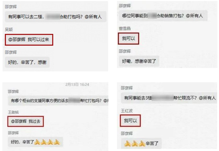 支援過程中,面對客流急速攀升、顧客咨詢問題增多、秩序維護(hù)繁忙、貨物打包分揀壓力大,需臨時調(diào)動支援崗位等情況,黨群工作部負(fù)責(zé)春節(jié)黨員支援服務(wù)現(xiàn)場協(xié)調(diào)工作的邵彥輝第一時間溝通協(xié)調(diào),支援隊員們積極響應(yīng),義無反顧地沖鋒在前?!拔铱梢浴薄拔疫^去”“我來”成了“紅色先鋒隊”支援交流群里的“刷頻”詞條,這是隊員們默契配合、共同應(yīng)對挑戰(zhàn)的具象體現(xiàn)。