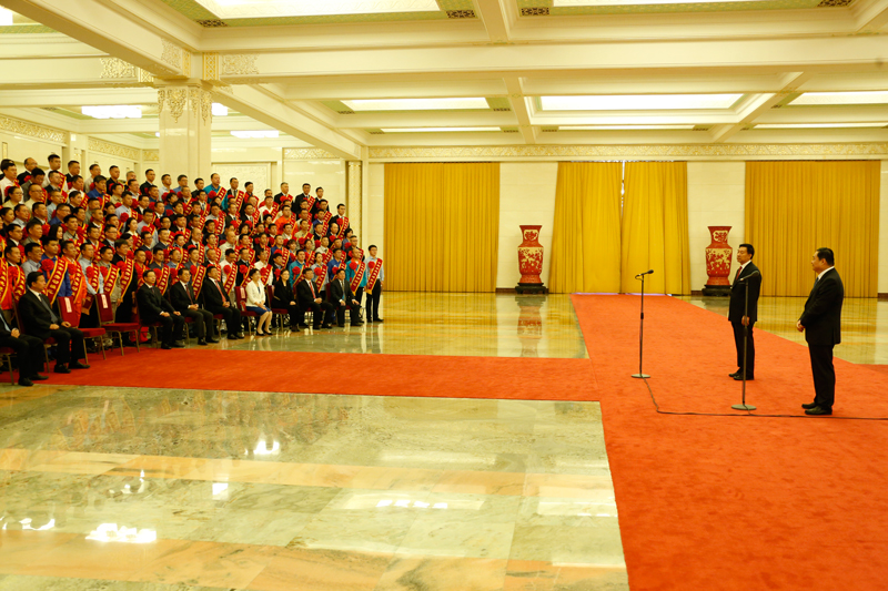 王勇指出,在以習(xí)近平同志為核心的黨中央堅(jiān)強(qiáng)領(lǐng)導(dǎo)下,中央企業(yè)廣大干部職工不忘初心、牢記使命,堅(jiān)定不移聽黨話跟黨走,奮力投身國企改革發(fā)展偉大實(shí)踐,取得了驕人業(yè)績。先進(jìn)集體和勞動(dòng)模范是中央企業(yè)干部職工的杰出代表,用無私奉獻(xiàn)和辛勤汗水,生動(dòng)詮釋了新時(shí)代“愛崗敬業(yè)、爭創(chuàng)一流,艱苦奮斗、勇于創(chuàng)新,淡泊名利、甘于奉獻(xiàn)”的勞模精神。他強(qiáng)調(diào),全體中央企業(yè)干部職工要以習(xí)近平新時(shí)代中國特色社會(huì)主義思想為指導(dǎo),以先進(jìn)集體和勞動(dòng)模范為榜樣,增強(qiáng)“四個(gè)意識(shí)”,堅(jiān)定“四個(gè)自信”,做到“兩個(gè)維護(hù)”,始終把黨和人民的事業(yè)放在最高位置,堅(jiān)決貫徹落實(shí)黨中央、國務(wù)院決策部署,對黨忠誠、愛黨愛國,勇于擔(dān)當(dāng)、爭創(chuàng)一流,忠于職守、愛崗敬業(yè),加快推動(dòng)企業(yè)高質(zhì)量發(fā)展,加快建設(shè)世界一流企業(yè),不斷開創(chuàng)中央企業(yè)改革發(fā)展和黨的建設(shè)新局面,為實(shí)現(xiàn)“兩個(gè)一百年”奮斗目標(biāo)做出新的更大貢獻(xiàn)。