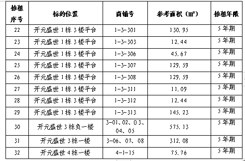(三)五年期門面使用權(quán),詳見(jiàn)下表: