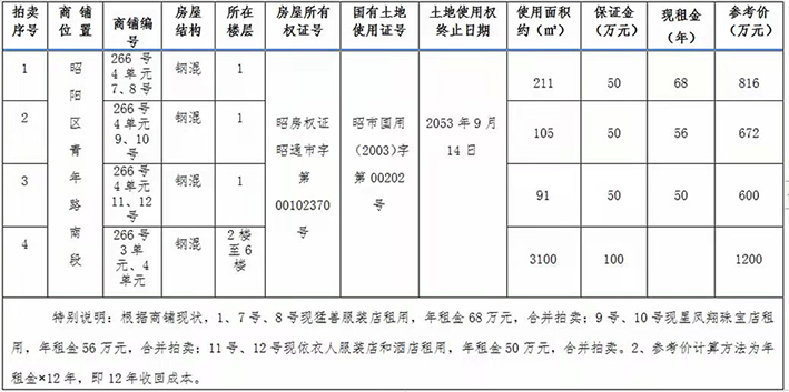 昭陽區(qū)青年路南段商鋪拍賣公告