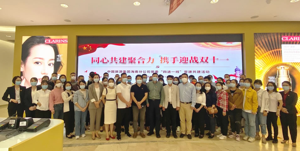 為助力海南離島免稅業(yè)務在2021年“雙十一”期間營銷熱力綻放,積極構建“資源共享、優(yōu)勢互補、互相促進、共同提高”的黨建共建格局,推進“我為群眾辦實事”實踐活動和“四進一線”活動走深走實。11月10日,中免海南運營總部、海南省免稅品有限公司、中免投資??诠?、中免投資海南公司聯(lián)合集團海南分公司、集團財務共享中心,組成50多人的黨員聯(lián)合突擊隊、服務隊,深入??谑腥赵聫V場免稅店銷售一線,開展“同心共建聚合力,攜手迎戰(zhàn)雙十一”黨建共建黨員服務活動。
