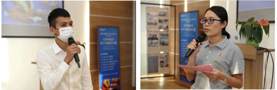三亞店第四黨支部黨員李金寶同志、第六黨支部黨員陳薇同志與現場和青年黨員們分享了自己的入黨初心,講述了自己的入黨故事。